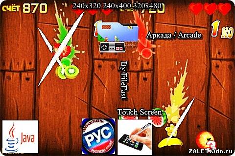 Наиболее продвинутый вариант активной java-аркады. Разрезай мечом подлетающие фрукты, но избегай бомб.